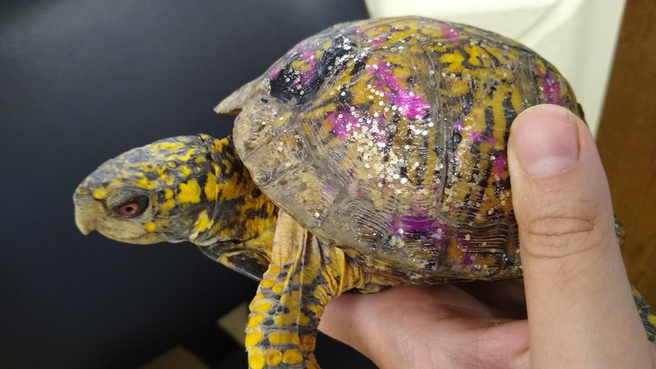 The shell of a turtle is a living growing part of its body which means that covering it with paint can block vitamin-packed rays of light from reaching the shell.